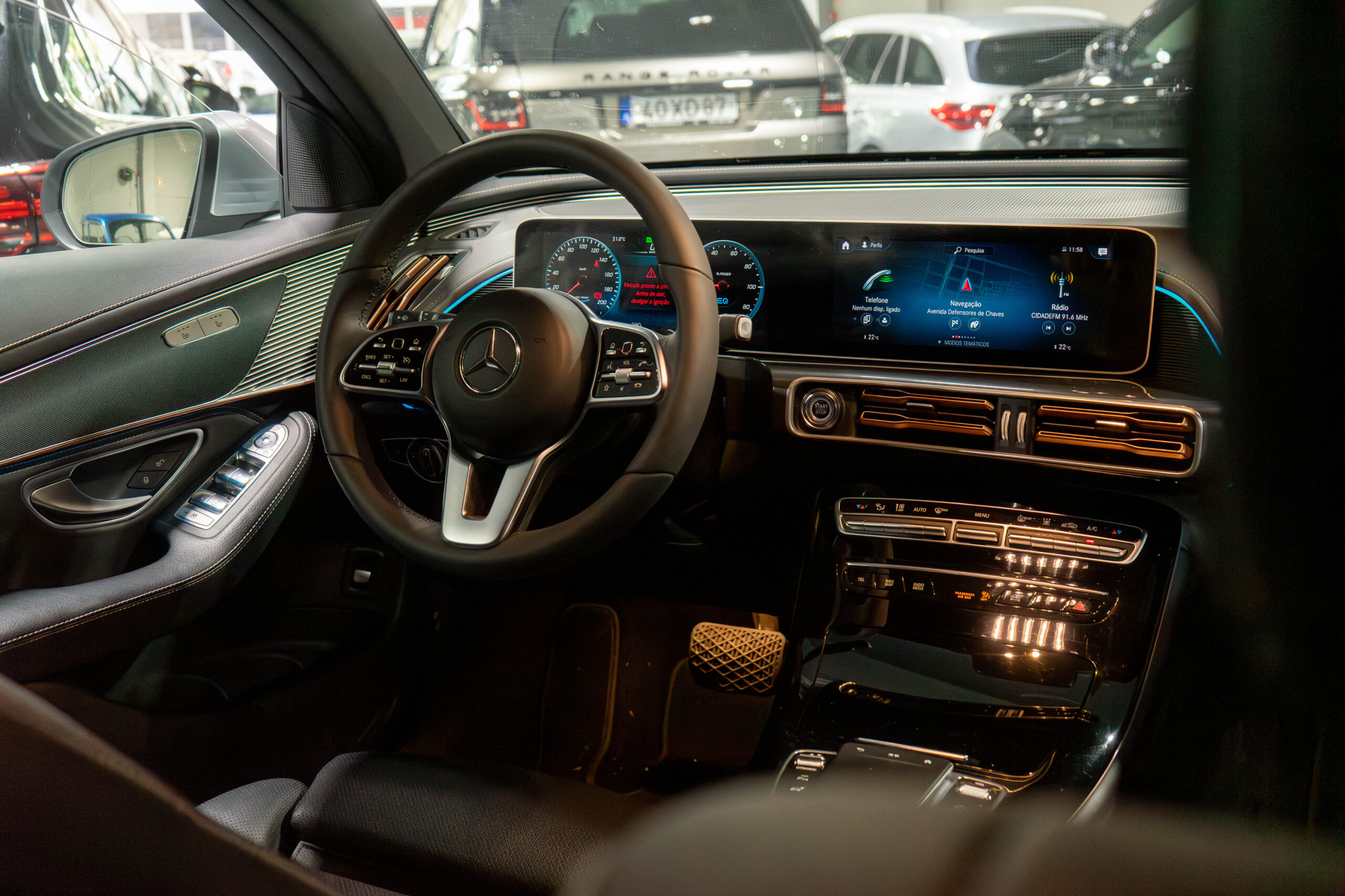 No seu coração elétrico, o EQC revela alma atlética: 408 cv de potência, tração 4MATIC e aceleração de 0 a 100 km/h em apenas 5,1 s — números dignos de um verdadeiro desportivo. A bateria de 80 kWh entrega uma autonomia real de ~417 km no ciclo WLTP, permitindo-te abraçar cada trajecto com confiança e silêncio absoluto.